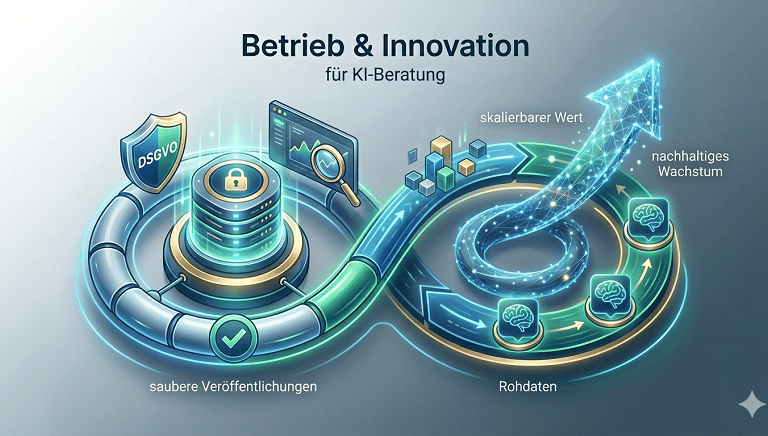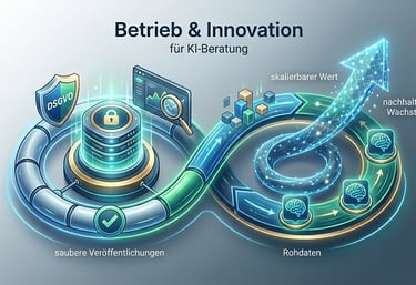 Wir betreiben deine KI stabil und entwickeln sie kontinuierlich weiter – mit Monitoring, Sicherheit/DSGVO, sauberen Releases und laufender Optimierung von Daten, Modellen und Prozessen, damit aus Use Cases nachhaltiger, skalierbarer Mehrwert entsteht.