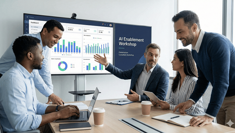 Wir befähigen Ihre Teams durch praxisnahe Schulungen, Sparring und Architektur-Know-how, KI fundiert zu verstehen und produktiv einzusetzen.